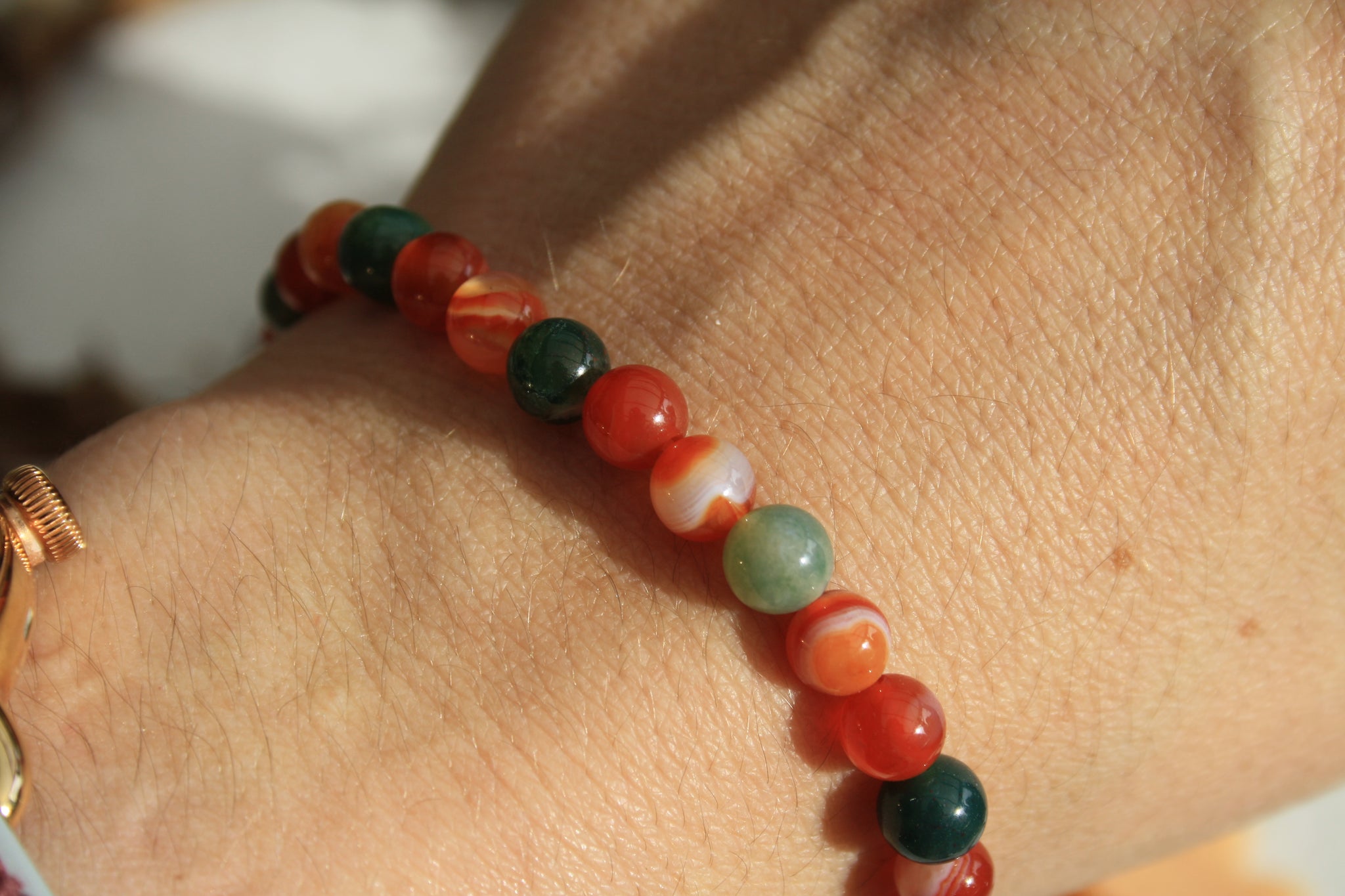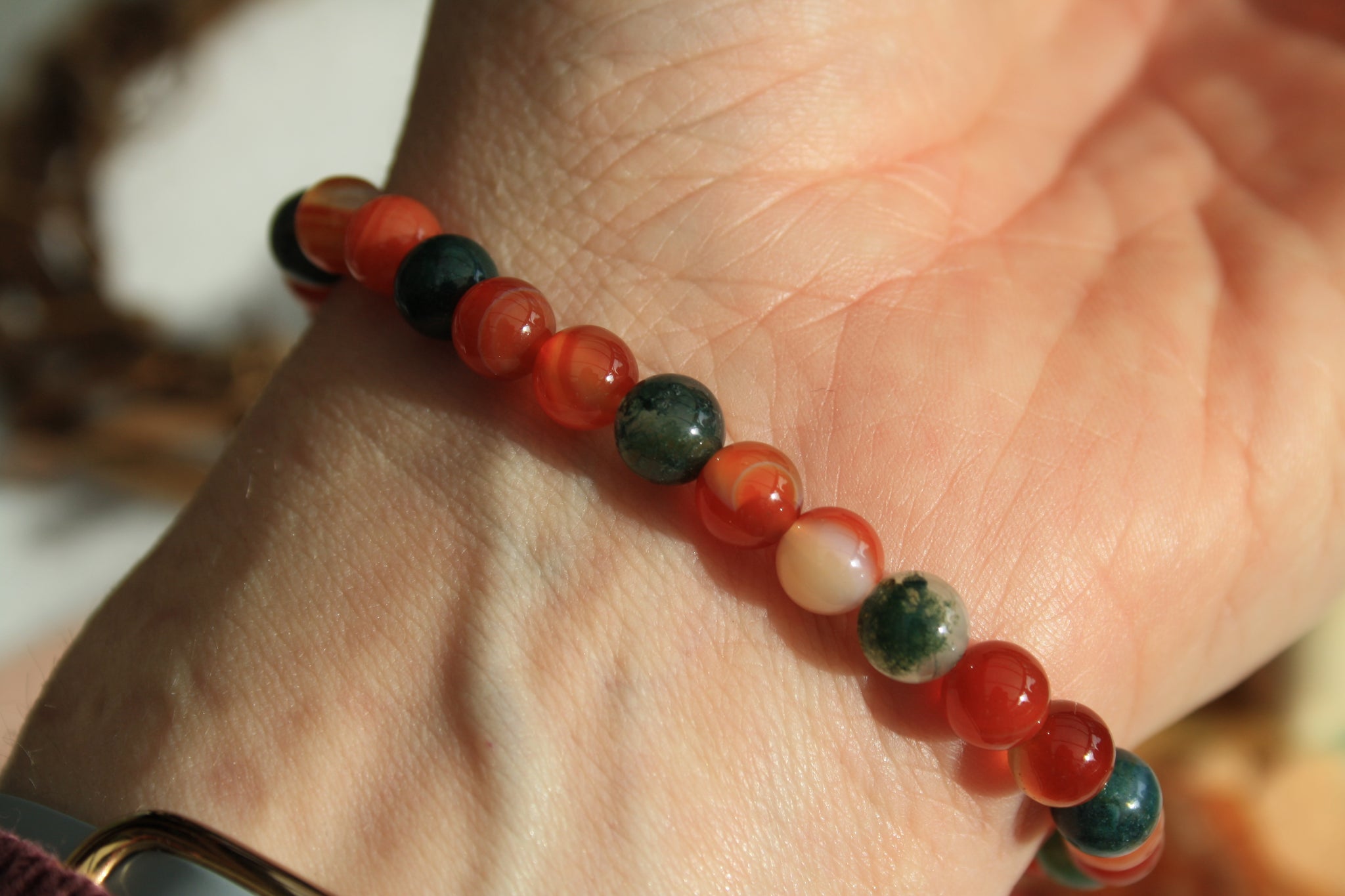 Bracelet d'automne, Agate rubanée et agate mousse